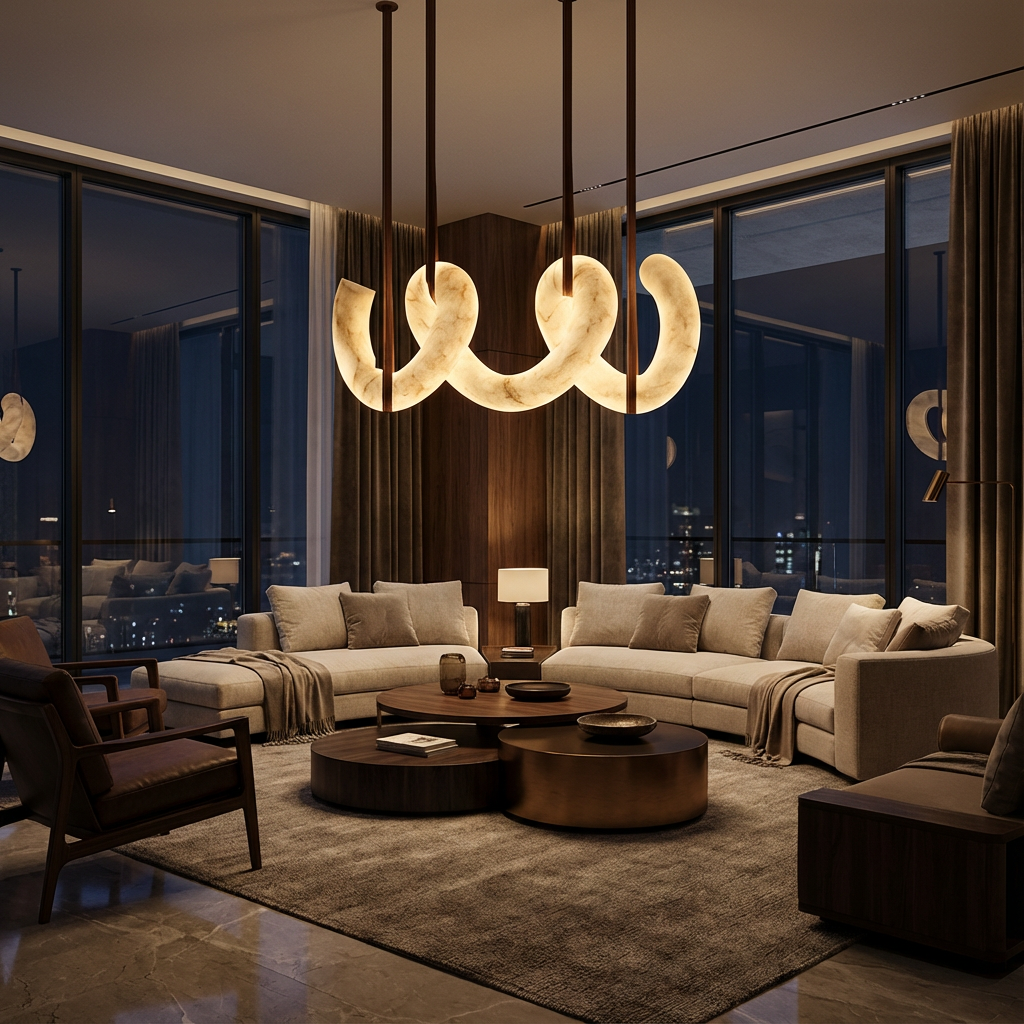 A refined alabaster cylinder that softly diffuses light, adding warmth and elegance to modern interiors.