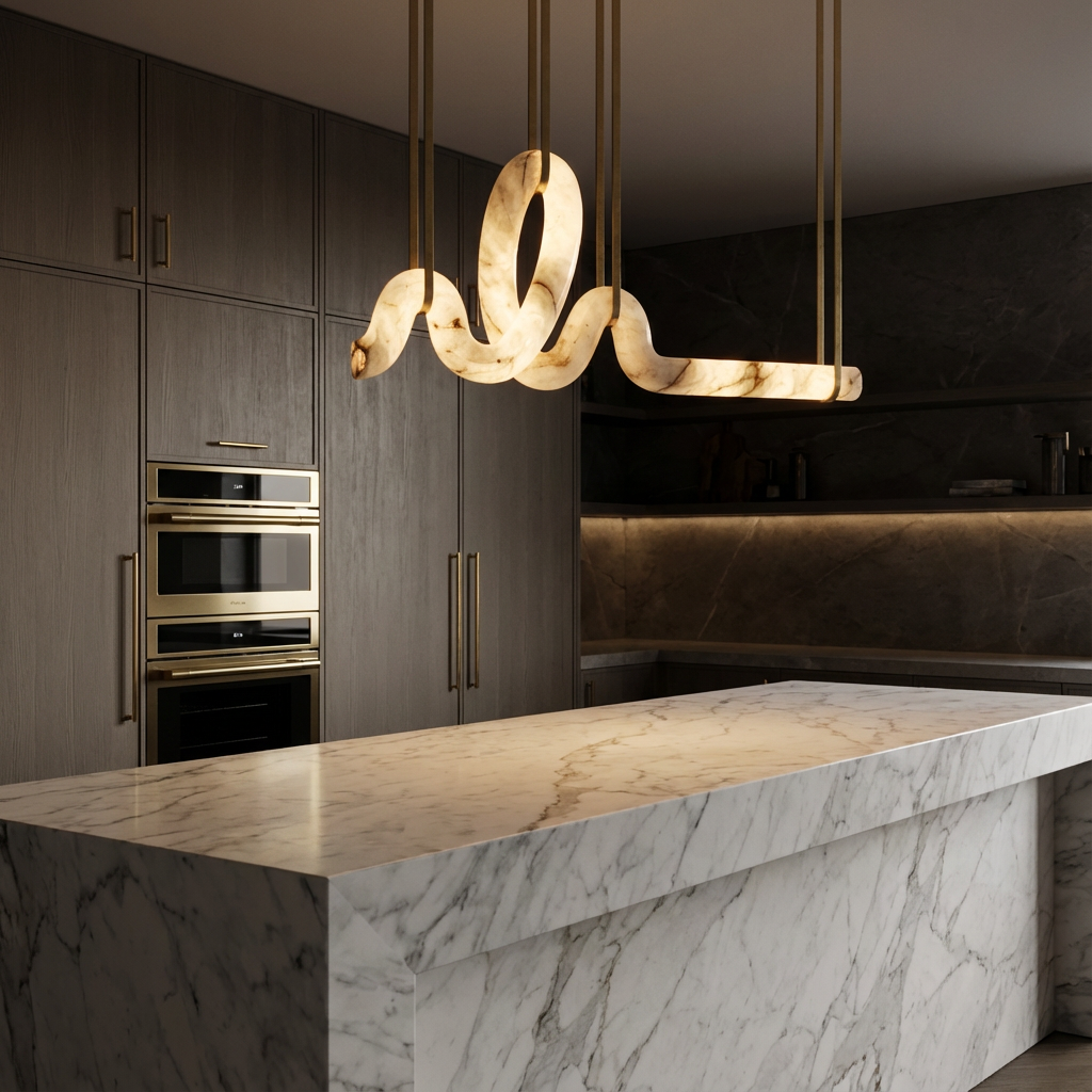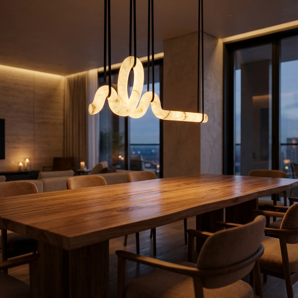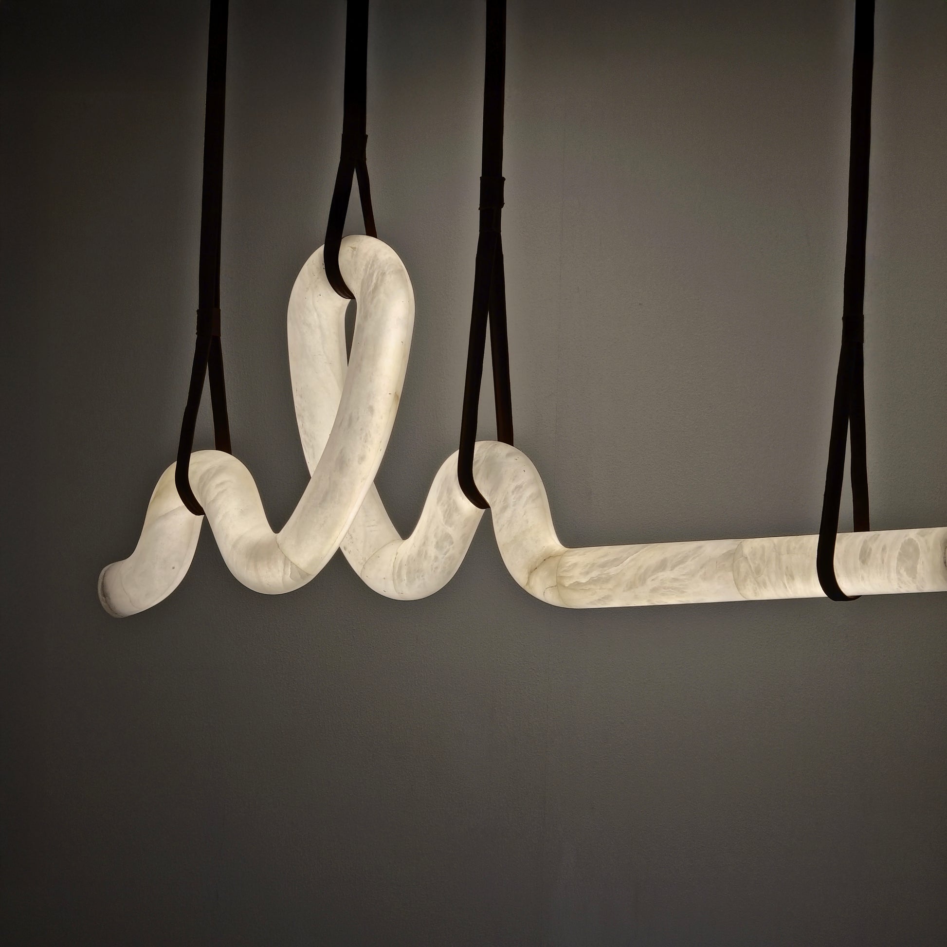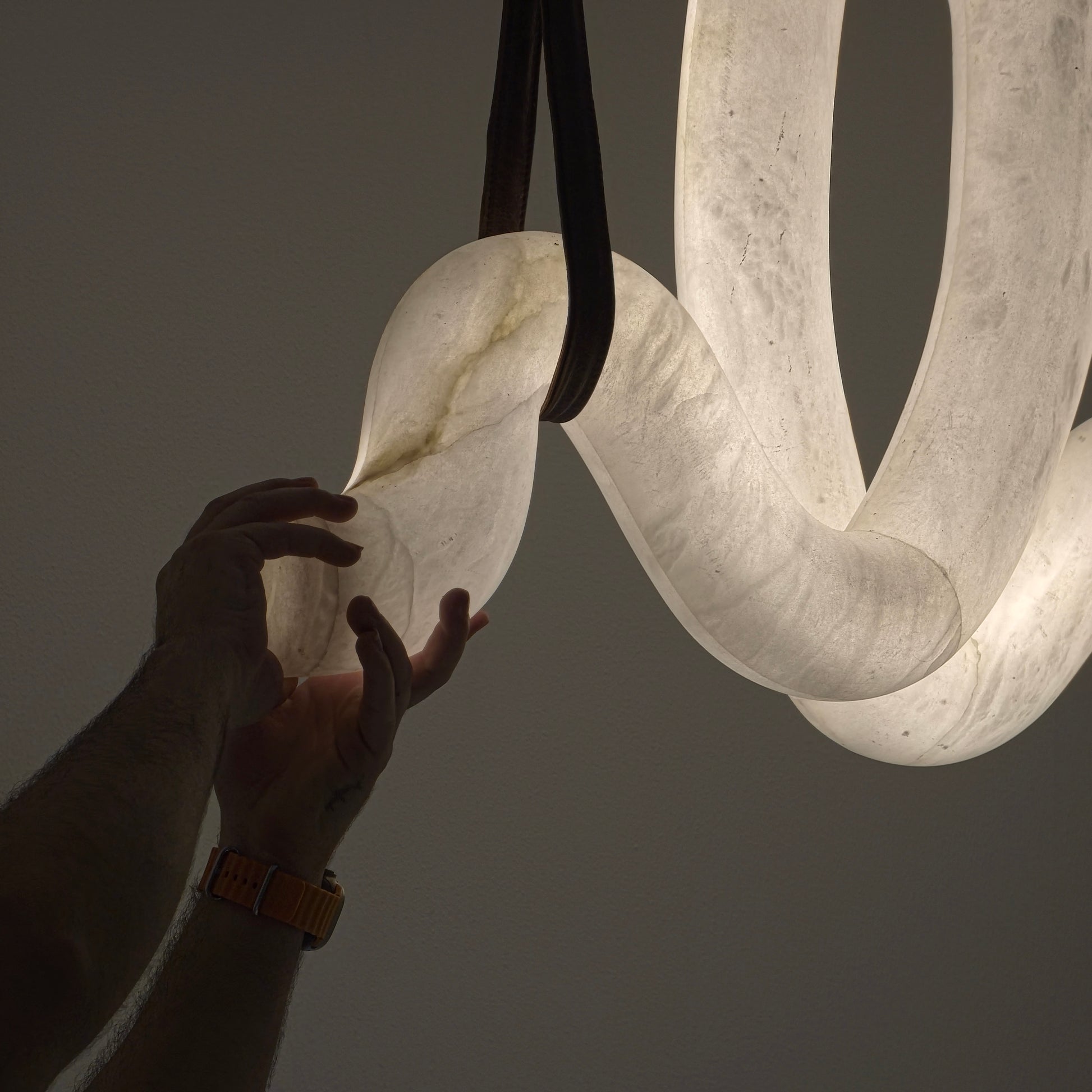 he envisioned a sculptural form that transforms alabaster into a glowing ribbon of light. With deep expertise in architectural lighting and a passion for timeless materials, Asaad crafts pieces that balance elegance, functionality, and emotional presence.