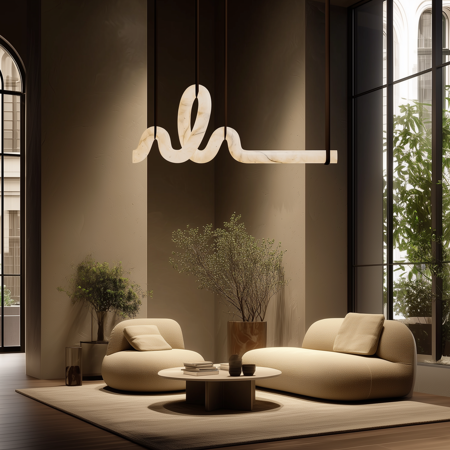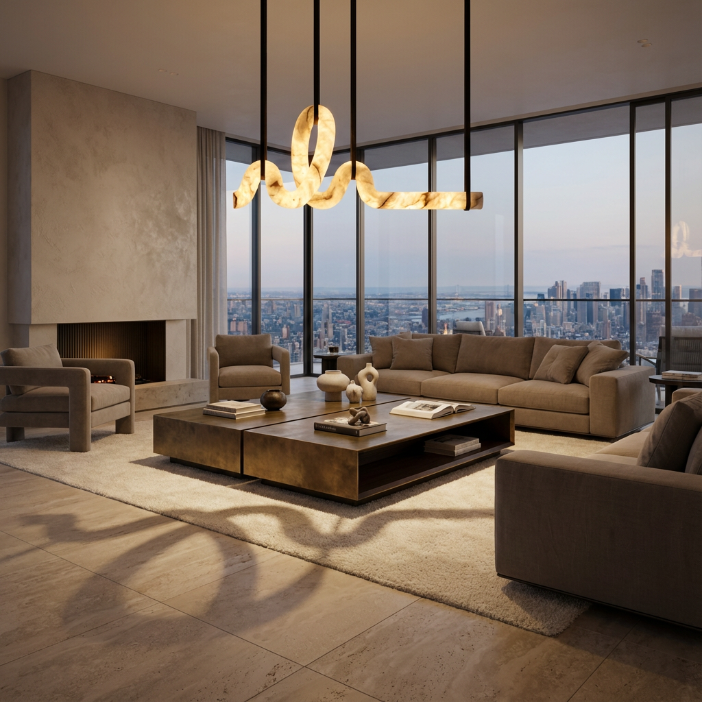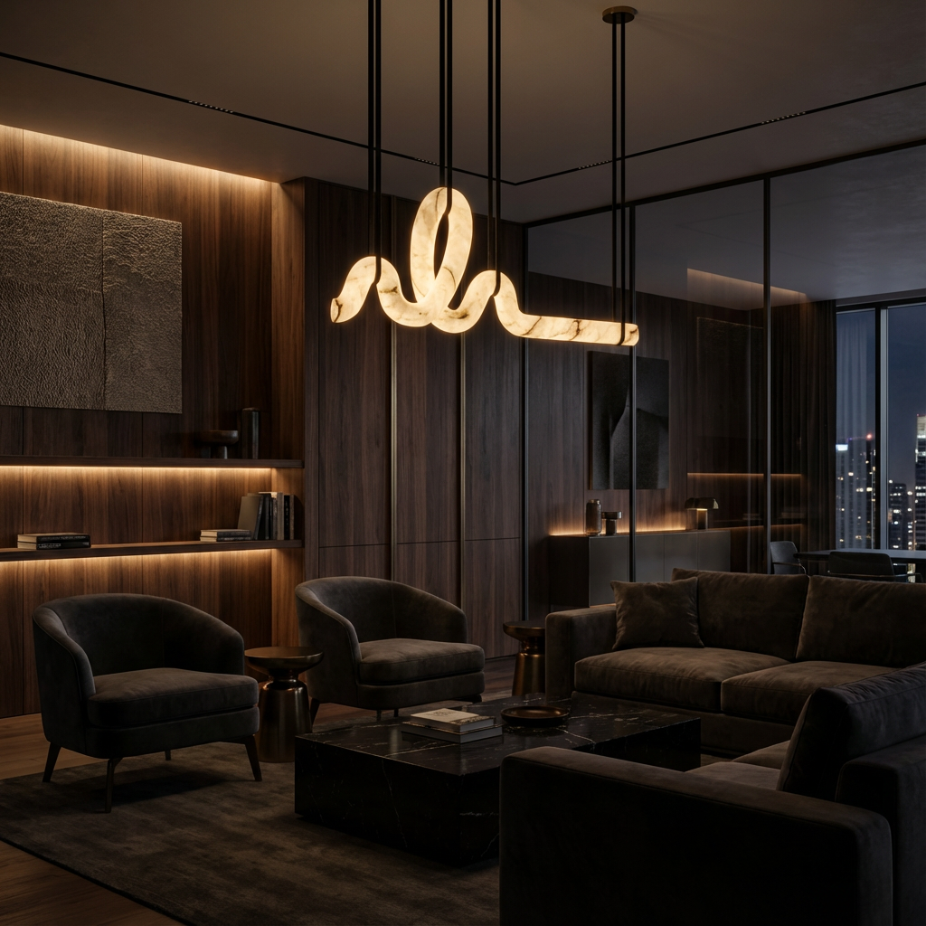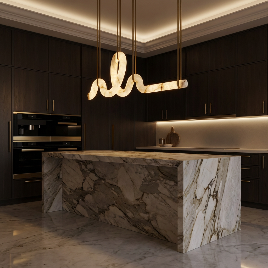he envisioned a sculptural form that transforms alabaster into a glowing ribbon of light. With deep expertise in architectural lighting and a passion for timeless materials, Asaad crafts pieces that balance elegance, functionality, and emotional presence.