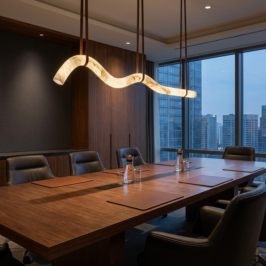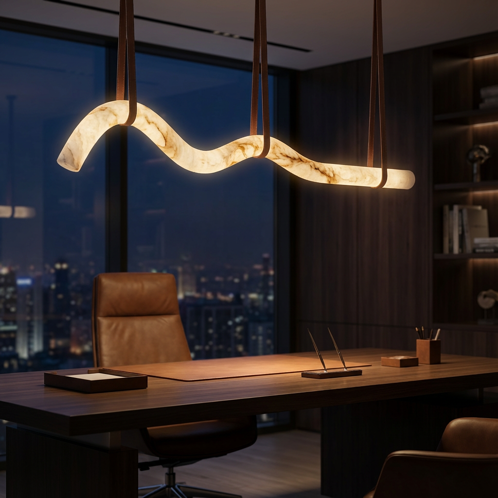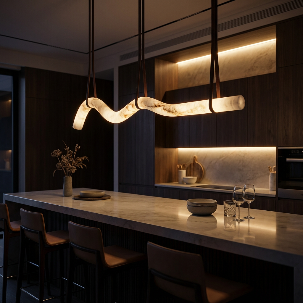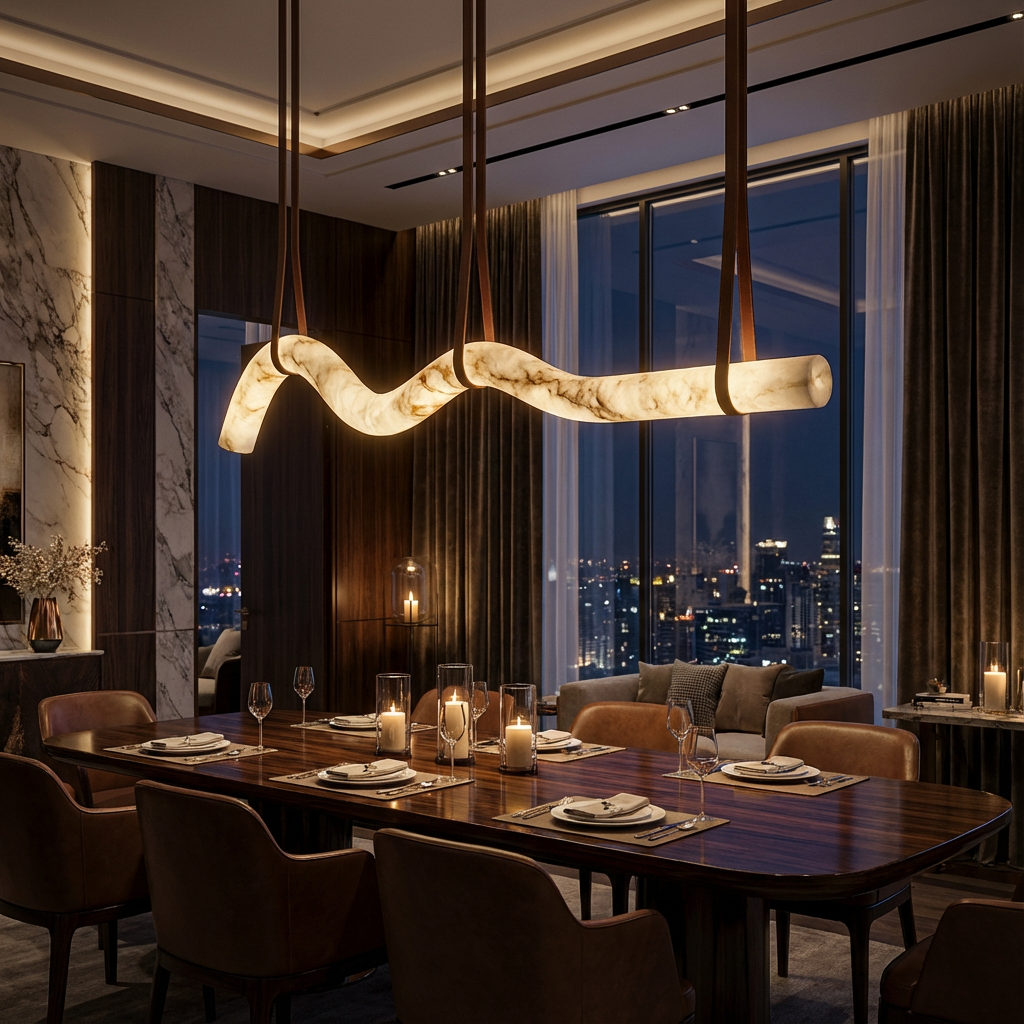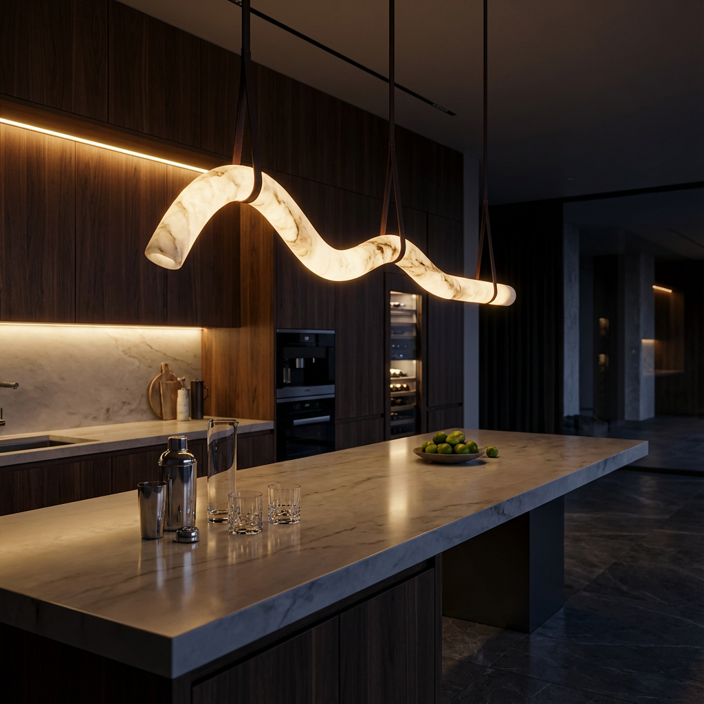 • Crafted from premium natural alabaster, selected for its soft translucency and refined veining.
